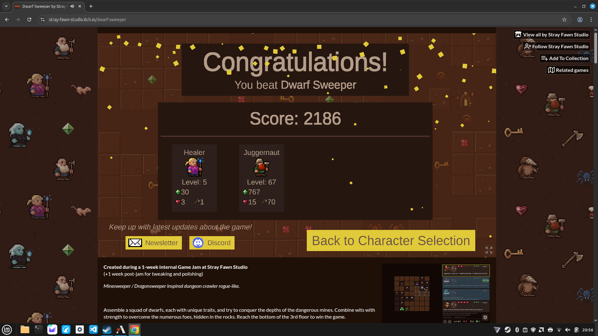 Created during a 1-week internal Game Jam at Stray Fawn Studio
